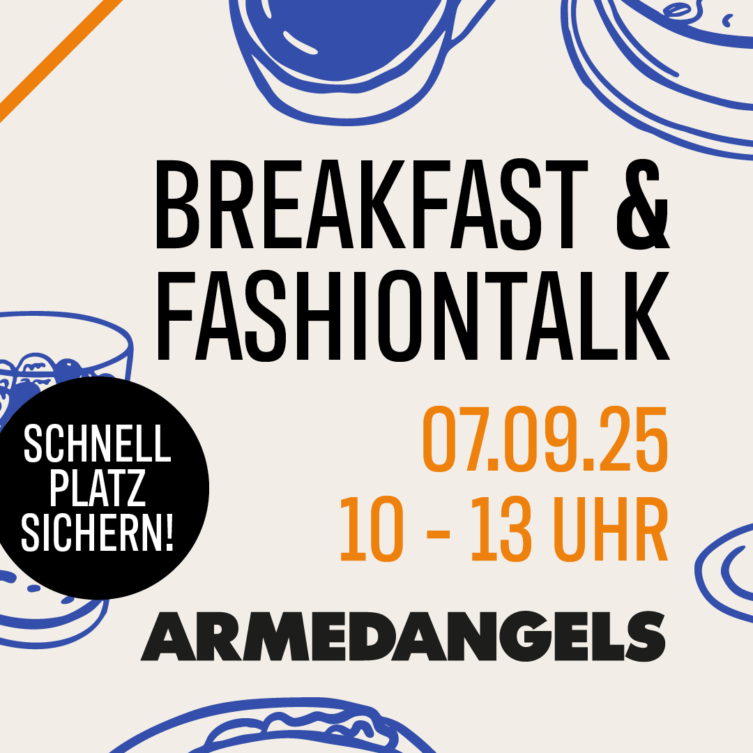 Starte deinen Sonntag mit uns & ARMEDANGELS: Genieße ein leckeres, gesundes, veganes Frühstück inklusive Smoothies und Kaffee. Mit Live-Modepräsentation (FW25 Kollektion) und einem interessanten Talk rund um nachhaltigere Fashion. Plus: Private Shopping vor Ladenöffnung am offenen Sonntag.